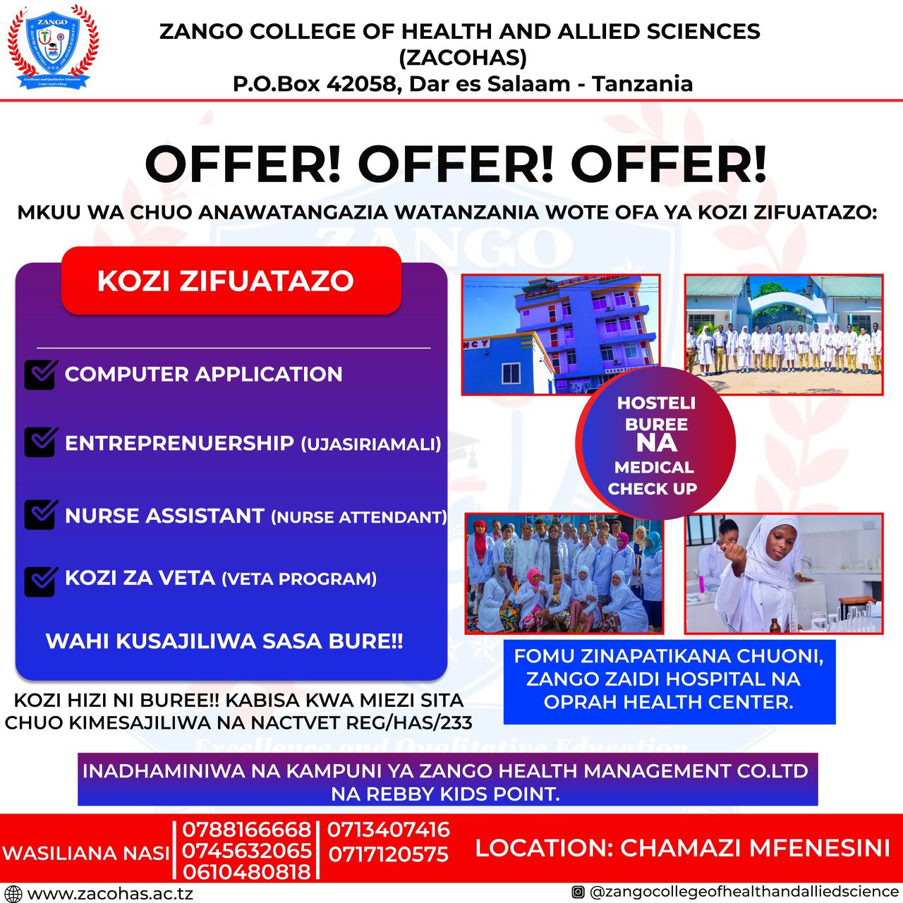 ZACOHAS invites application for short courses including Procurement & Supply, Record Managemen, and Enterpreneurshipt